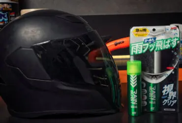 Когда едете на мотоцикле. Если антидождём обработать визор мотоциклетного шлема, обзор во время непогоды заметно улучшится.