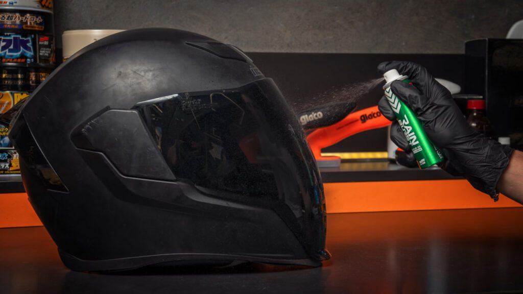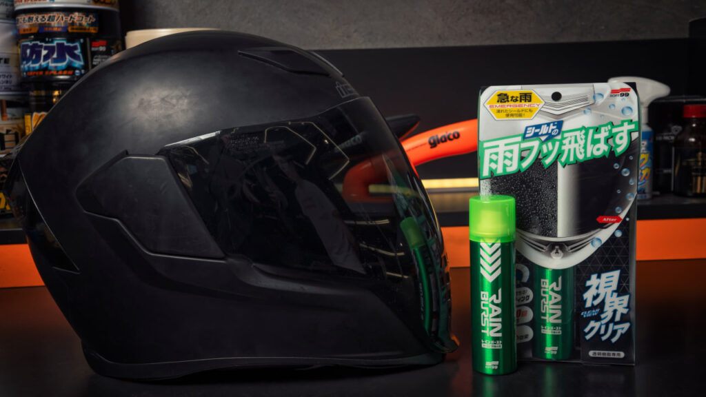 Когда едете на мотоцикле. Если антидождём обработать визор мотоциклетного шлема, обзор во время непогоды заметно улучшится.