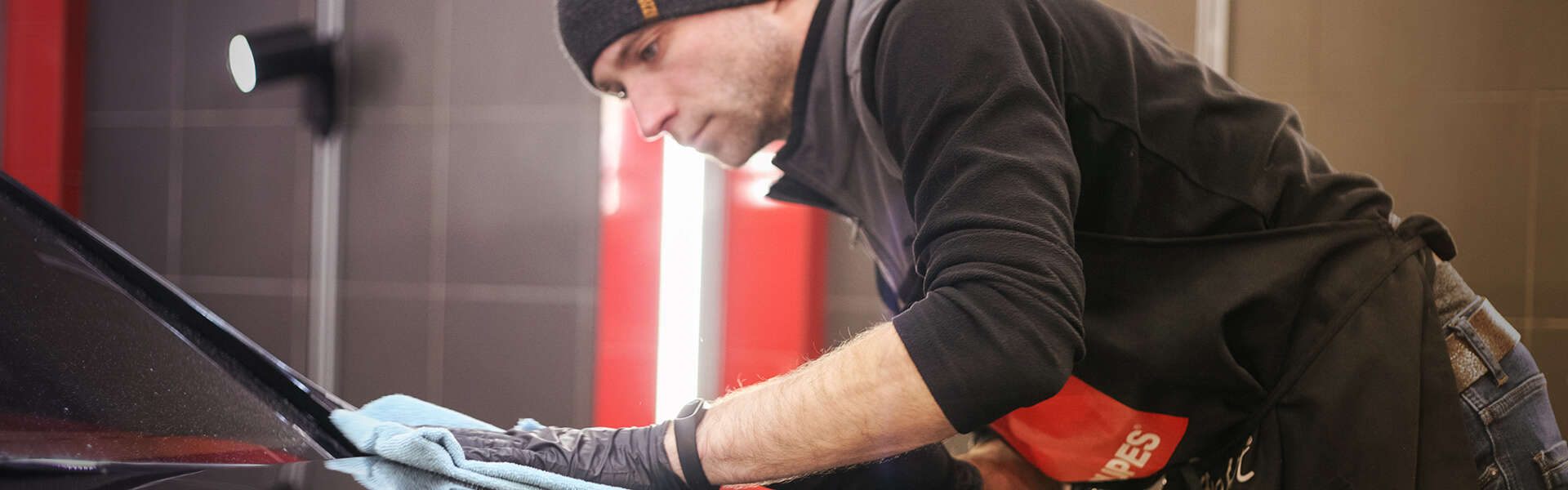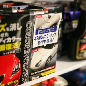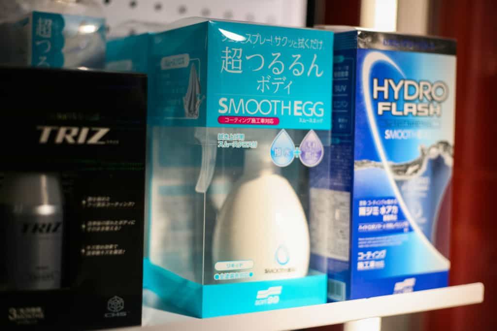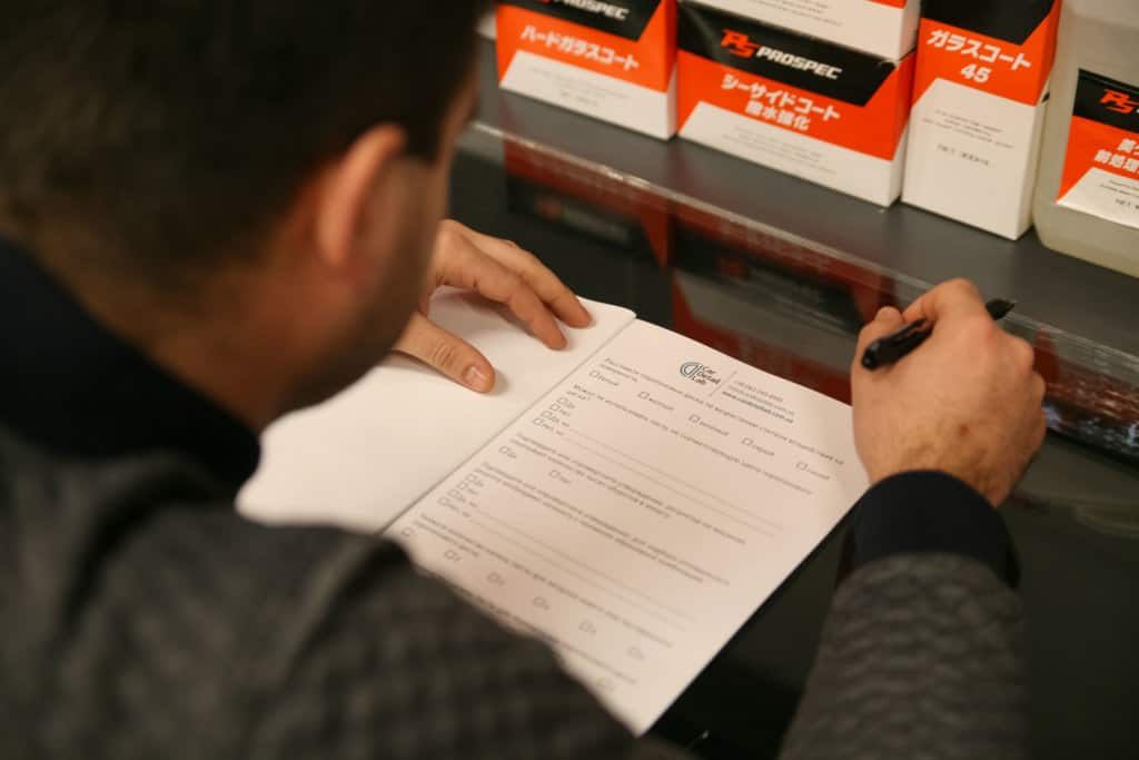 Знакомство с линейками очищающих и защитных составов. К сожалению, на фотографии попала лишь малая часть модуля: нанесение одного из восков, нанесение гидрофобного покрытия и демонстрация блеска.