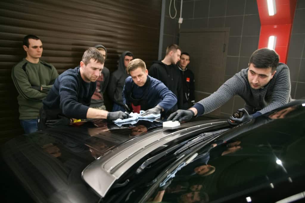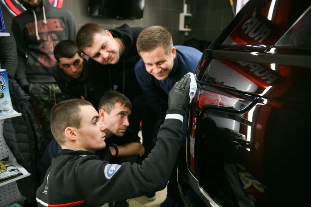 Первый курс обучения детейлингу в 2018 году нам удалось заснять достаточно подробно: шлифовка и полировка ЛКП, полировка фар, нанесение защитных покрытий, уход за салоном, нанесение разнообразных кварцевых составов и финальная аттестация.