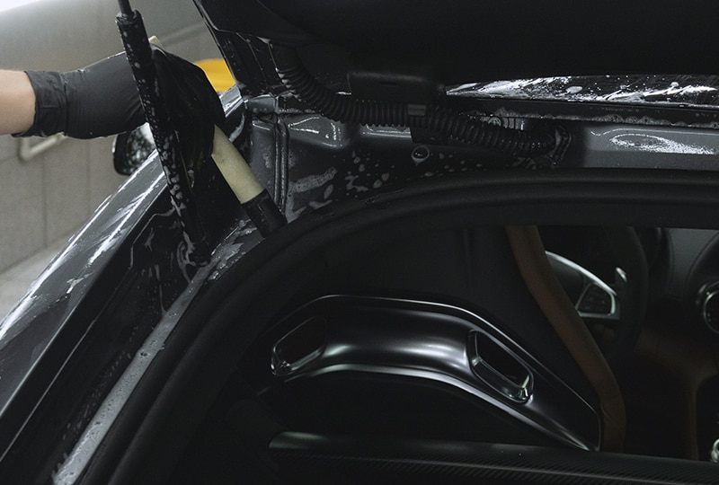 Перед тем, как покрыть машину антигравийной пленкой и кварцевым покрытием, важно, чтобы она была идеально чистой. Если не удалить въевшиеся загрязнения, под пленкой появятся пузырьки воздуха, а кварцевое покрытие не прослужит долго.