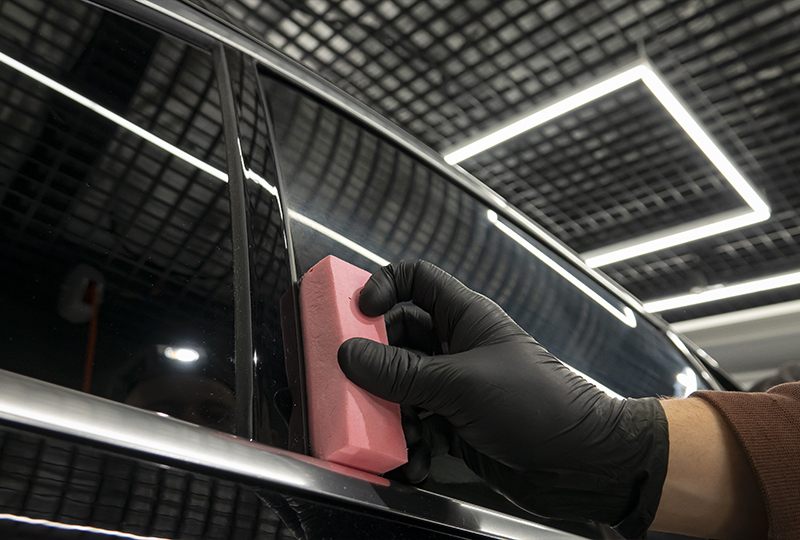 От въевшихся загрязнений на кузове мы избавились при помощи пластилина. Также очистили стекла и нанесли антидождь.