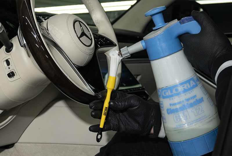Используя деликатные очистители мы обслужили и защитили все элементы салона: кожу, прозрачный и глянцевый пластик. В складках и порах кожаных сидений быстро скапливаются крошки, частицы пыли и другой мелкий мусор. Мы тщательно вычистили каждый зазор.