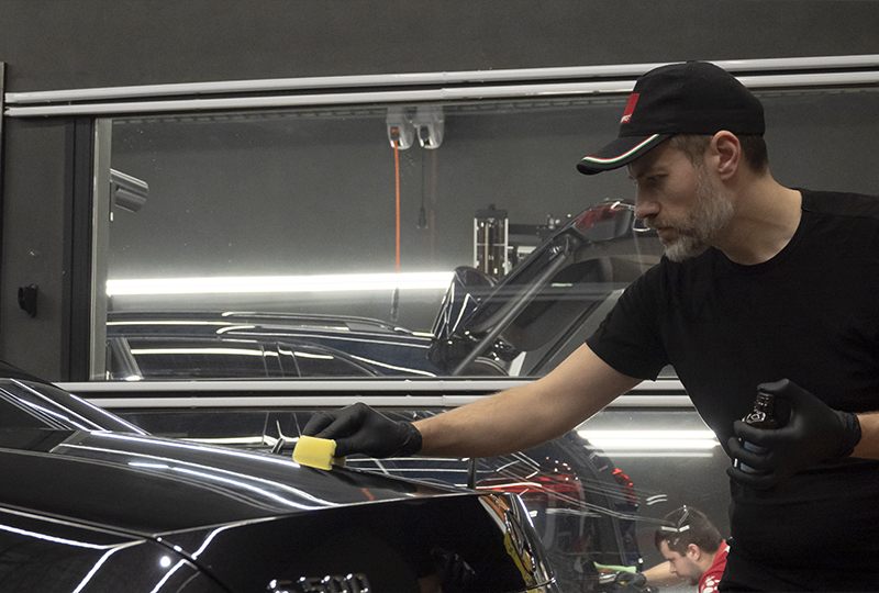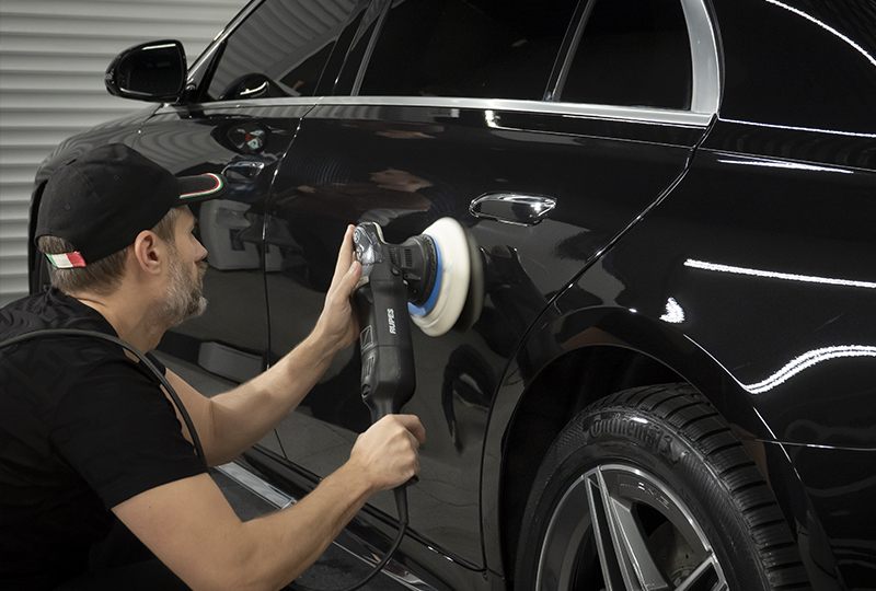 - Обробили відплорований кузов інспекційним очищувачем RUPES Rapid Cleaner Detailer, щоб прибрати залишки пасти і підготувати ЛФП до нанесення кварцового покриття