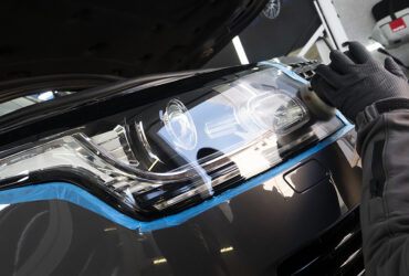 Для кузова использовали кварцевый состав SOFT99 H-7 Ultimate Real Glass Coat, разработанный специально для защиты автомобилей и водного транспорта. Это покрытие особенно эффективно в условиях климата с повышенной влажностью. Кварц придал Range Rover Vogue SDV8 глубокий стеклянный блеск и сильное водоотталкивание. Светотехнику защитили этим же составом — SOFT99 H-7. Такое покрытие прослужит до 1,5 лет.