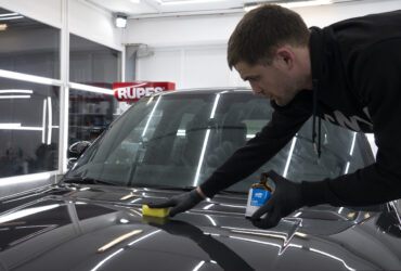 На кузове были незначительные повреждения в виде паутинки из царапин и следов водного камня. Полировали по методике RUPES BigFoot — эксцентриковыми машинками, синими, желтыми, белыми кругами и пастами линейки D-A. Для финиша использовали пасту Beautiful G’zox Clear Veil Finish Compound, которая сочетается с любимыми полировальными системами. Фишка пасты G’zox в том, что после ее применения, и перед нанесением защитного покрытия, нет необходимости обезжиривать поверхность. Она убирает микропаутину, насыщает цветом и блеском, а также повышает адгезию.