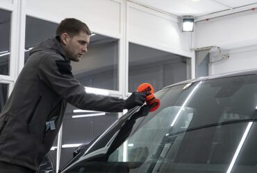 Стекла очистили с помощью абразивной пасты SOFT99 Glass Compound Z. Она применяется для глубокой очистки стекла от жировых отложений и въевшихся загрязнений. После этого нанесли антидождь GLACO Roll on Large, срок службы которого — 3 месяца.