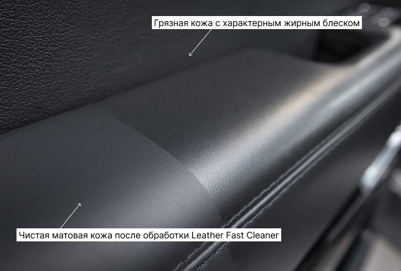 Главная причина загрязнения кожаных поверхностей заключается в оседании жиров: кожного сала человека, машинного масла, косметики, частиц смога. Жировая пленка быстро поглощает грязь, которая потом забивается в поры кожи. Как бы парадоксально это ни звучало, но для очистки от жира нельзя использовать обезжириватели. Большинство из них сделаны на основе нефтепродуктов и легко растворяют тонкую полиуретановую пленку, которой покрывают кожу на заводе для защиты от воздействия окружающей среды. Так что ацетон, керосин, уайт спирит, а также другие подобные средства для очистки кожи не годятся.Также тщательно вычистили все труднодоступные места, пластиковые элементы интерьера. Использовали специализированный очиститель для салона ChemicalPRO.