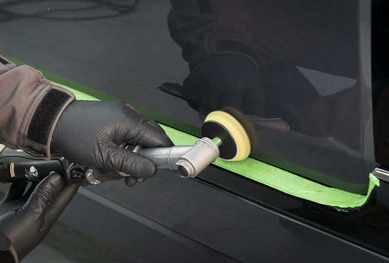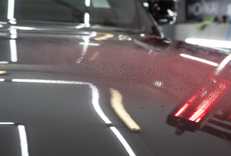 На кузове были незначительные повреждения в виде паутинки из царапин и следов водного камня. Полировали по методике RUPES BigFoot — эксцентриковыми машинками, синими, желтыми, белыми кругами и пастами линейки D-A. Для финиша использовали пасту Beautiful G’zox Clear Veil Finish Compound, которая сочетается с любимыми полировальными системами. Фишка пасты G’zox в том, что после ее применения, и перед нанесением защитного покрытия, нет необходимости обезжиривать поверхность. Она убирает микропаутину, насыщает цветом и блеском, а также повышает адгезию.