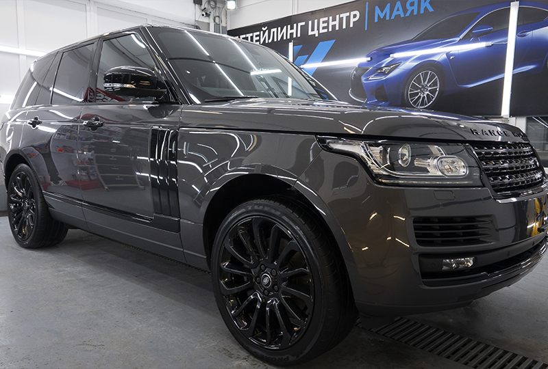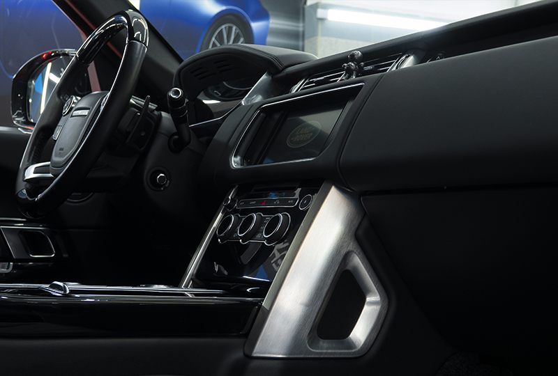 Для кузова использовали кварцевый состав SOFT99 H-7 Ultimate Real Glass Coat, разработанный специально для защиты автомобилей и водного транспорта. Это покрытие особенно эффективно в условиях климата с повышенной влажностью. Кварц придал Range Rover Vogue SDV8 глубокий стеклянный блеск и сильное водоотталкивание. Светотехнику защитили этим же составом — SOFT99 H-7. Такое покрытие прослужит до 1,5 лет.