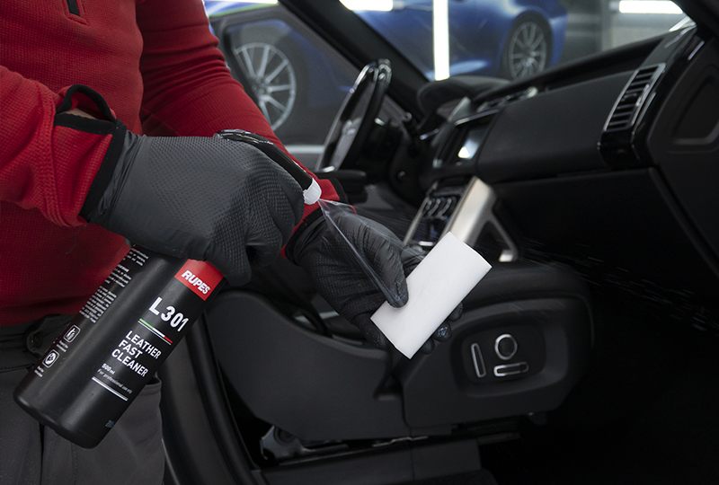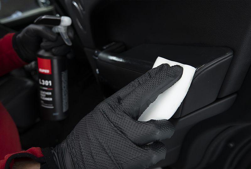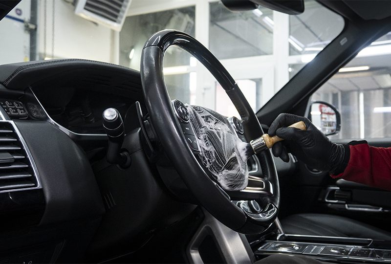 Первым делом занялись очисткой элементов салона из натуральной кожи. В студиях наших партнеров для этой задачи используют комплекс G’zox Detailing Pro. Он увлажняет и размягчает кожу, увеличивая ее эластичность и продлевая срок службы. Дополнительно очистили кожу от жира, грязи и старых въевшихся пятен средством Leather Fast Cleaner. Его состав не сушит, не смывает краску и не портит защитный полиуретановый слой. А еще защищает кожу от преждевременного износа.