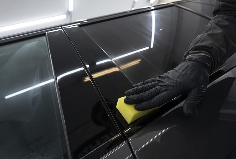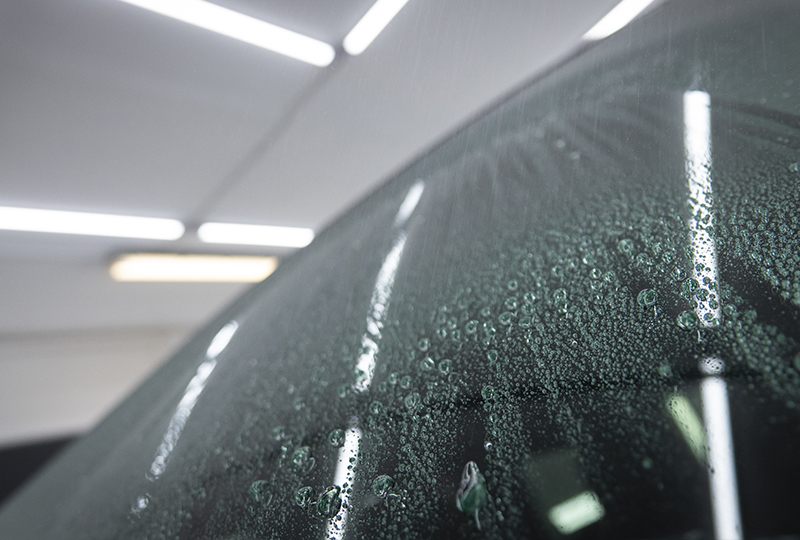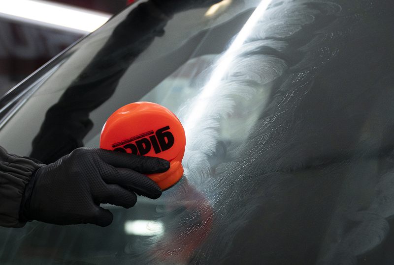 Стекла очистили с помощью абразивной пасты SOFT99 Glass Compound Z. Она применяется для глубокой очистки стекла от жировых отложений и въевшихся загрязнений. После этого нанесли антидождь GLACO Roll on Large, срок службы которого — 3 месяца.