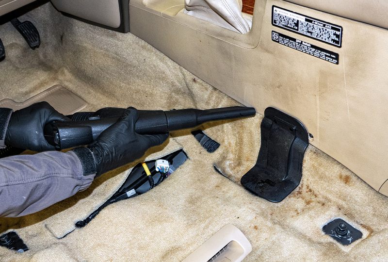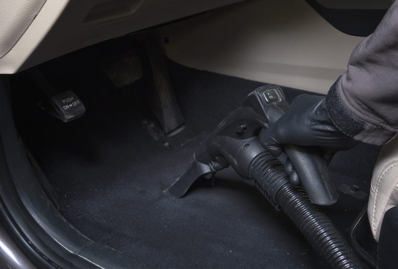 - В режиме пылесоса соберите всю грязь и пыль с ковриков, сидений и потолка.