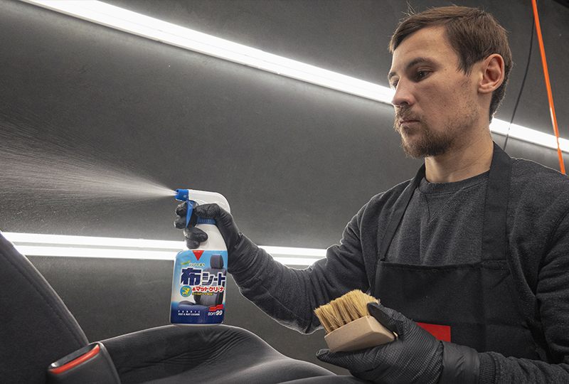 - Fabric Seat & Mat Cleaner необхідно розпорошувати на поверхню з відстані не менше 20 см