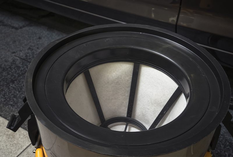 - При необходимости выполните сухую уборку. Установите на мусоросборный бак парогенератора специальный фибровый фильтр, который идет в комплекте.