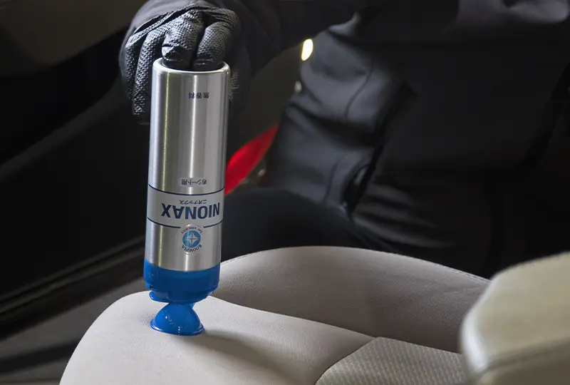 - Прислоните распылитель к сиденью и распылите состав одним нажатием в течение секунды.