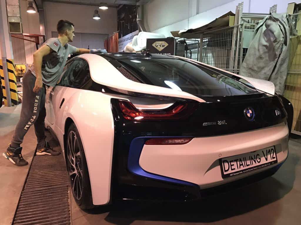 В автосалоне «АВТ Бавария» в Днепре прохошла закрытая презентация двух гибридных BMW: малыша i3 и спортивного купе i8. Специально для подготовки к презентации были приглашены наши партнеры — студия детейлиннга V12. Поскольку для выездного детейлинга очень важна скорость работы, было выбрано защитное покрытие SOFT99 TRIZ Premium. Покрытие придает автомобилю зеркальный блеск, аналогичный эффекту кварцевых защитных составов.