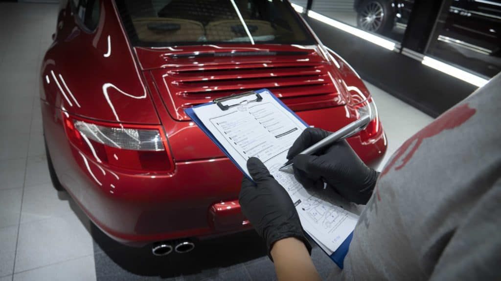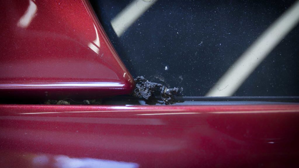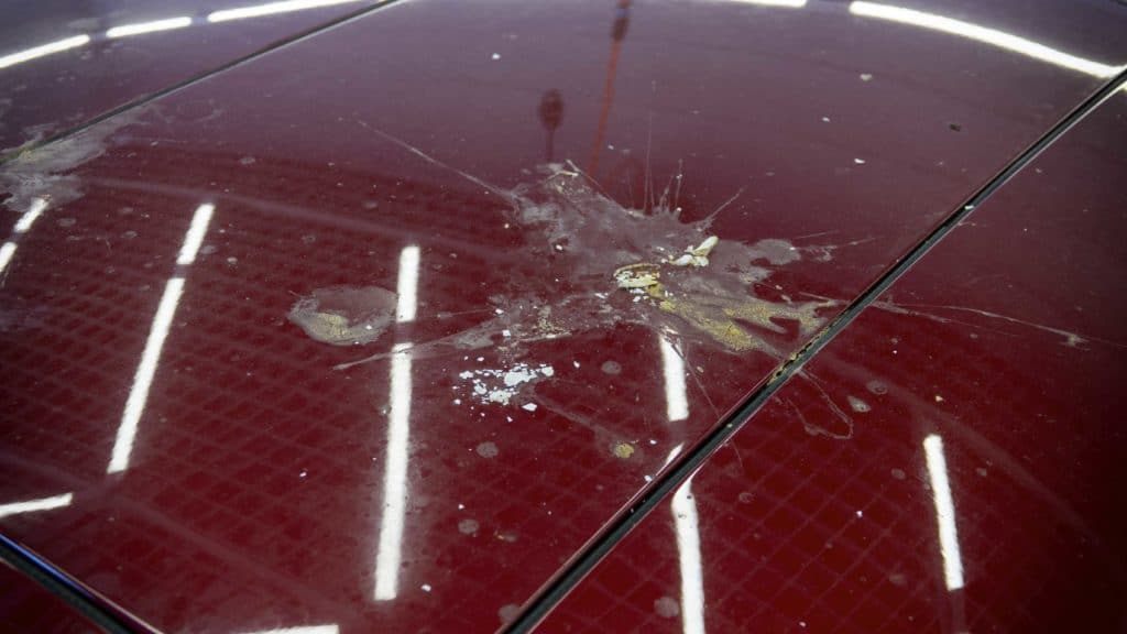Первичный осмотр автомобиля: фиксация повреждений и загрязнений. Следы на крыше — это разбитое яйцо. Чтобы устранить их, потребуется шлифовка: