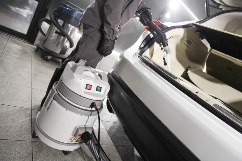 4. Экстрактор или моющий пылесос. Когда химия растворила загрязнения, ее нужно полностью вытянуть из очищаемой поверхности. Если этого не сделать, салон запреет и завоняется, а высохшая химия проявится в виде белых разводов. Запах химии еще долго не покинет салон и будет напоминать о себе, раздражая слизистые оболочки.