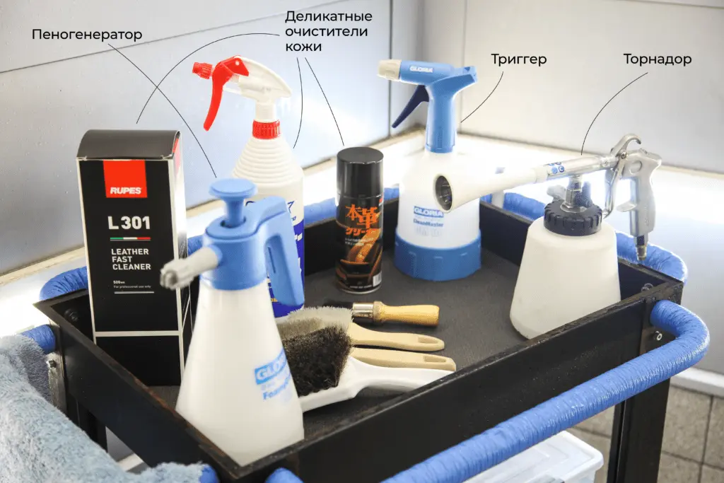 Эффективный набор для выведения стойких пятен на тканевых сиденьях.