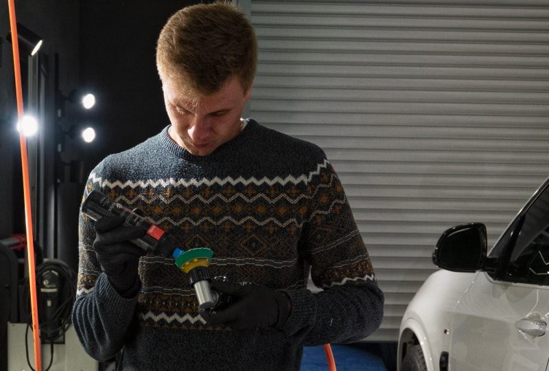 Практику проводили на клиентских авто — это специально подобранные машины с разнообразными дефектами и типами ЛКП, чтобы студенты почувствовали разницу в работе и закрепили теоретические знания.