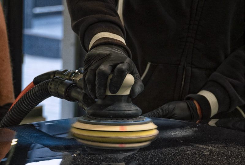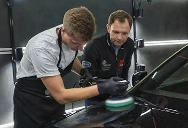 Модуль «Продвинутая полировка» началась с теории, на которой рассказали про разновидности лакокрасочного покрытия, типы и механики работы полировальных машин RUPES. Затем перешли к разбору полировальных кругов и паст, а также рассмотрели типы повреждений ЛКП. Перед началом практики инструкторы рассказали про технику безопасной работы.