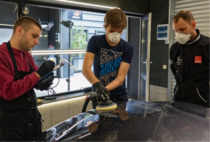 Заключительная часть учебной программы закрепляет полученные навыки и дает студентам уверенность, что обучение не прошло даром. Студенты получили клиентский автомобиль и прошли с ним все этапы детейлинга от заполнения акта приема до составления акта выполненных работ.