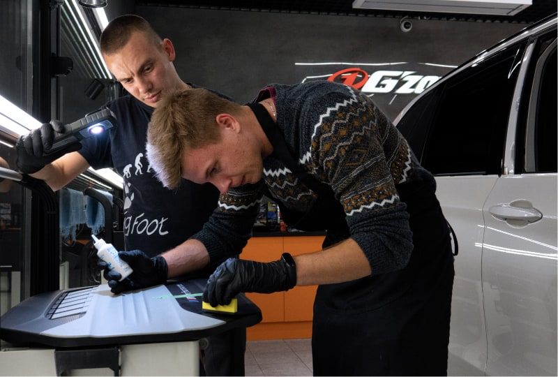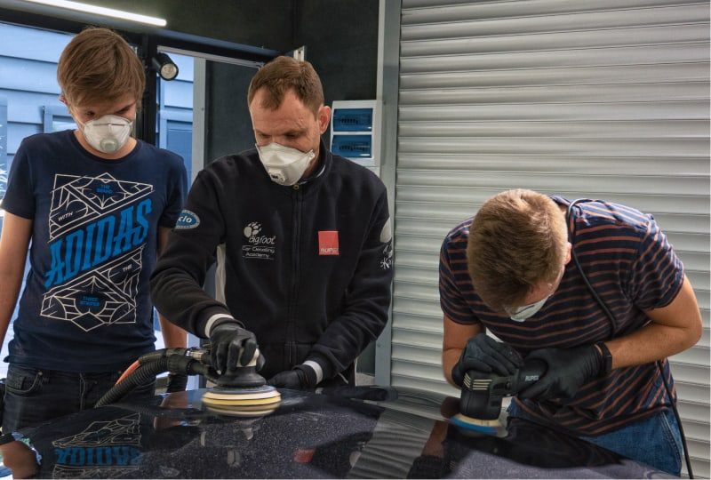В первый день у студентов было теоретическое занятие, а во второй день проводили практику, на которой студенты подготавливали машину к детейлингу. Процесс подготовки: двухфазная мойка, очистка кузова от органических, статических и не смываемых загрязнений.