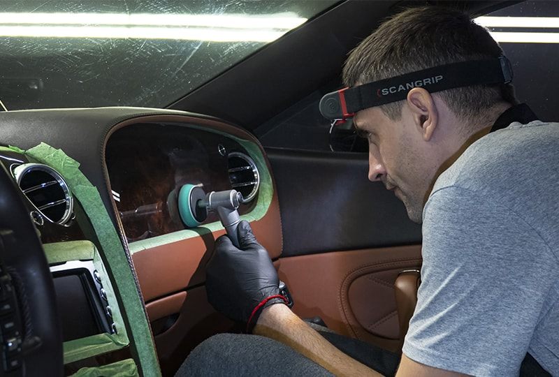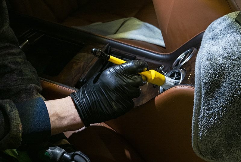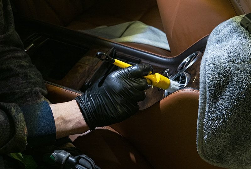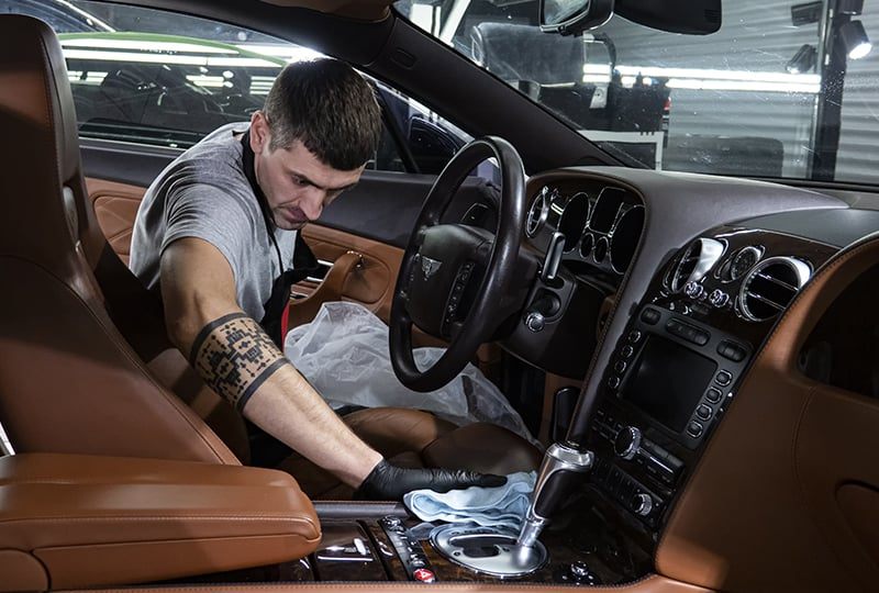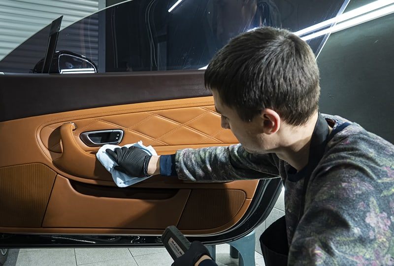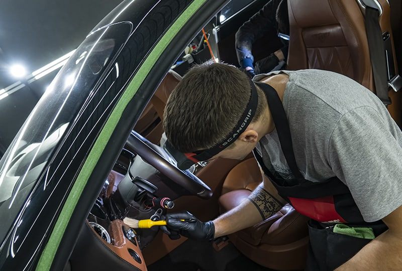 Студентов научили работать с алькантарой, текстилем, велюром, ковролином, флоком и пластиком, а также с разными видами кожи. Каждый материал по-разному реагирует на химическое и физическое воздействие, поэтому мы показали, как грамотно работать в той или иной ситуации.