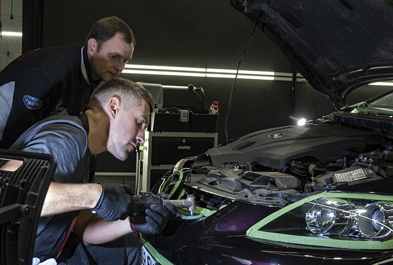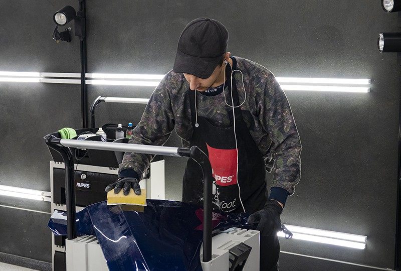 В этом модуле работали с линейкой профессиональных защитных покрытий для кузова, стекол, дисков, матового и глянцевого пластика. Студенты научились правильно наносить и закаливать покрытия коротковолновыми инфракрасными лампами.