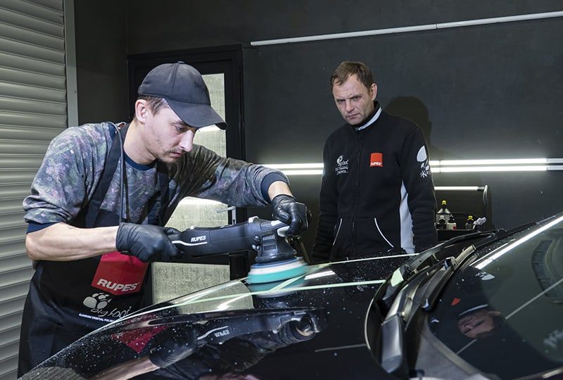 В первый день у студентов прошло теоретическое занятие. Второй день выделили под практику, студенты учились подготавливать машину к полировке, деликатно очищать кузов автомобиля от статических и несмываемых загрязнений, правильно подбирать очищающие составы.