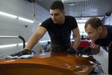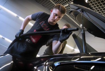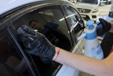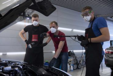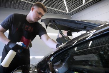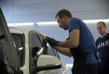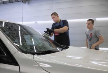 Одна из частей модуля о защитных составах посвящена работе с покрытиями для стекол «антидождь». Студенты учатся глубокой очистке стекол и нанесению различных типов «антидождей».