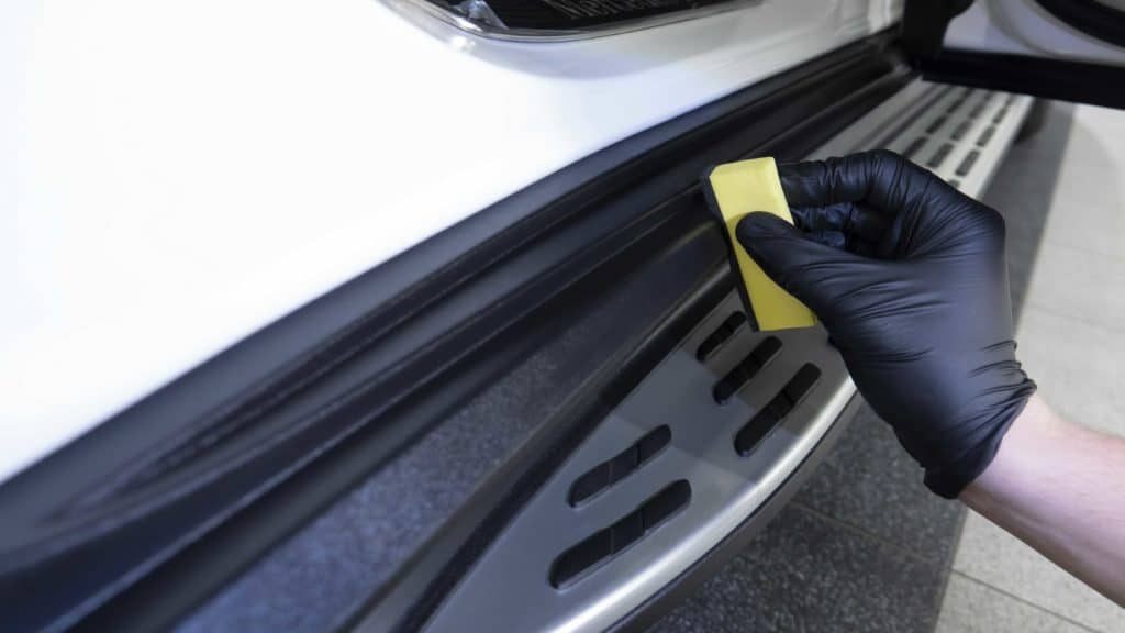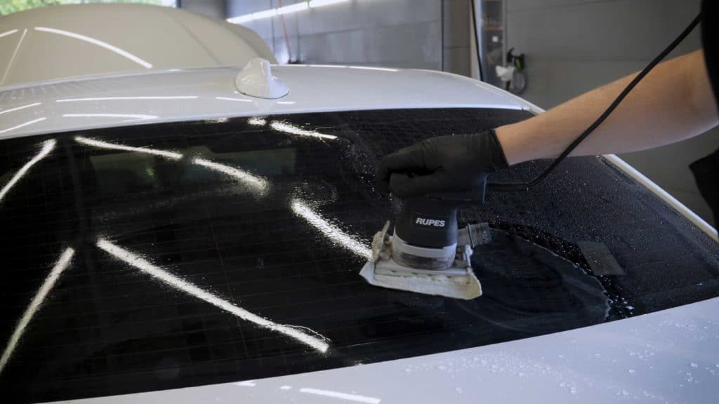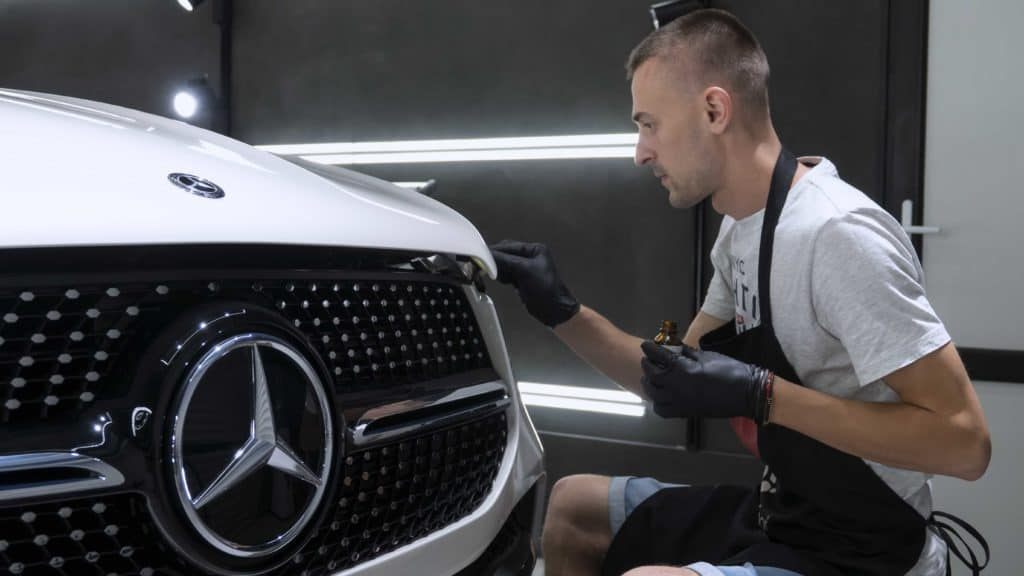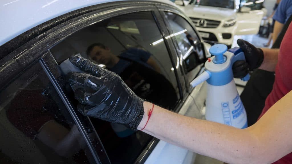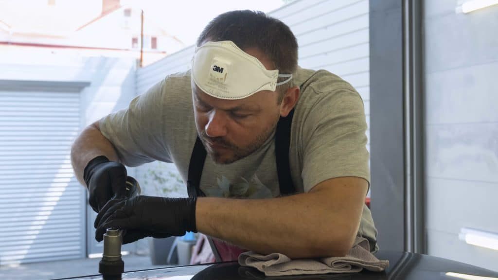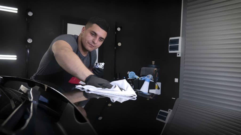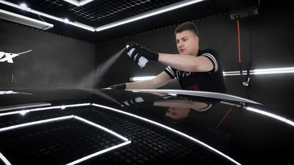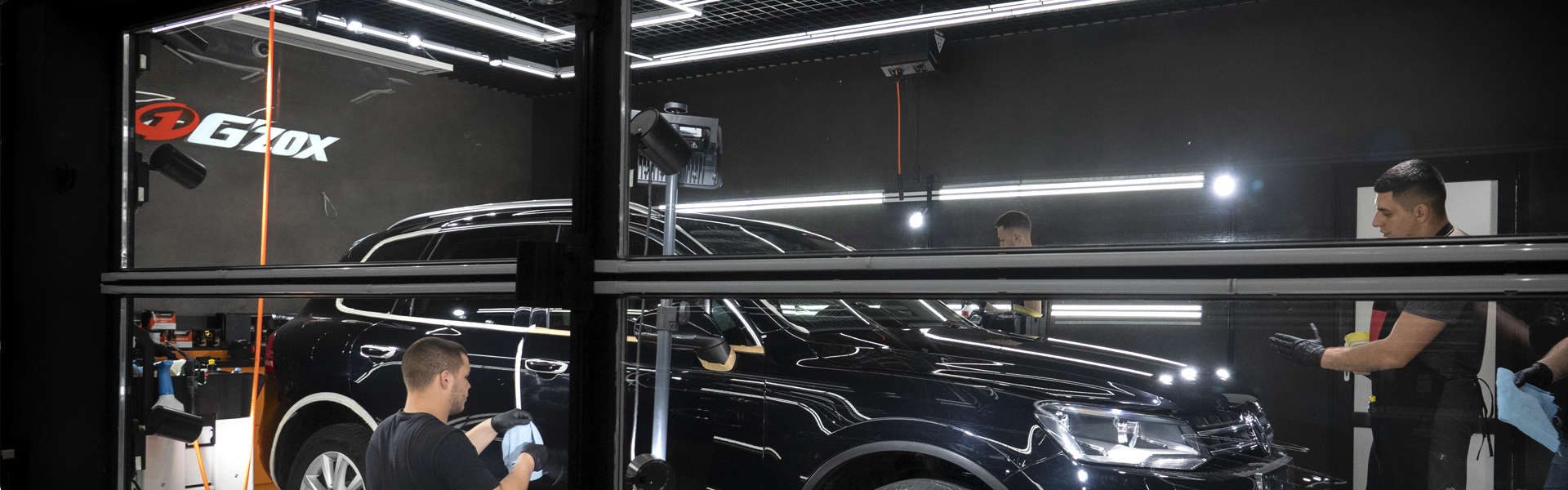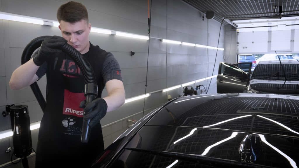Одна из частей модуля о защитных составах посвящена работе с покрытиями для стекол «антидождь». Студенты учатся глубокой очистке стекол и нанесению различных типов «антидождей».