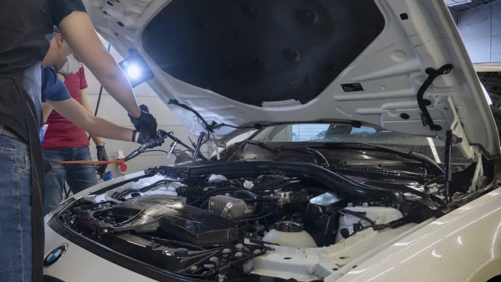 Безопасная мойка и глубокая очистка подкапотного пространства — неотъемлемый элемент детейлинга. Студенты узнают, как отмывать застарелые масляные и химические подтеки, не повредив при этом изоляцию электрики и другие уязвимые элементы моторного отсека.