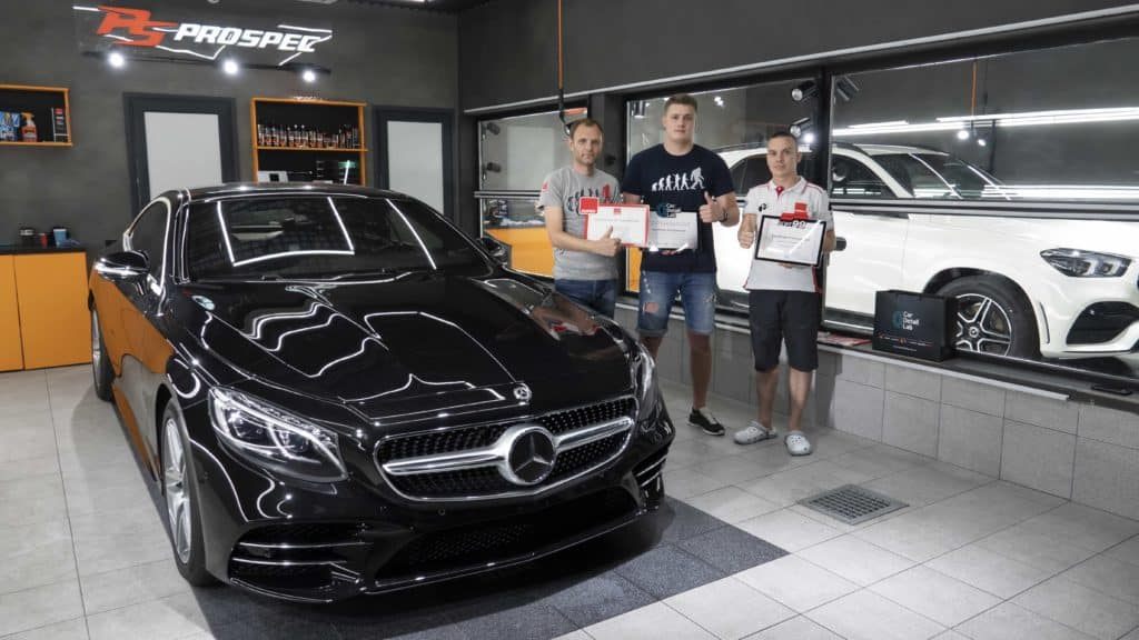 В нашем тренинг-центре прошел очередной курс, на котором студенты изучали детейлинг-мойку, шлифовку, полировку, очищающие и защитные составы, кварцевые составы и химчистку, а в конце провели детейлинг клиентского автомобиля и прошли теоретическую аттестацию.