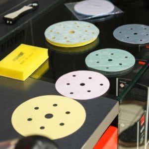 Учим подбирать абразивы, подготавливать поверхность и бороться с глубокими повреждениями. Студенты исправляли серьезный дефект на тестовой панели.