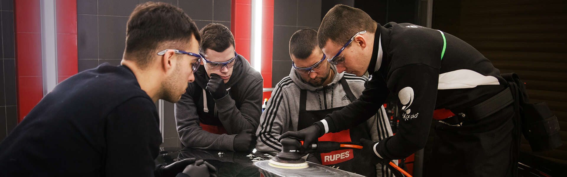 Изучаем типы ЛКП, дефекты и способы их устранения по методологии RUPES. Студенты учатся оценивать повреждения и объем работы, подбирать инструмент и рецептуру в зависимости от типа лака, контролировать нажим и траекторию полировки. За время обучения студенты полируют несколько типов лака и различные поверхности автомобиля.