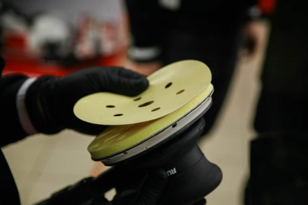 Учим подбирать абразивы, подготавливать поверхность и бороться с глубокими повреждениями. Студенты исправляли серьезный дефект на тестовой панели.