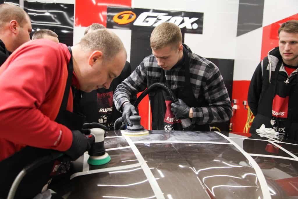 Примечательно, что модуль затянулся и вместо отведенных 5 дней длился 9, поскольку попался сложный для новичков автомобиль с мягким японским лаком. Инструктор не принимал работу студентов и раз за разом заставлял переделывать, затягивая все сроки. В итоге крайне уставшие студенты получили колоссальный опыт, а клиент — идеальный автомобиль. Все довольны.