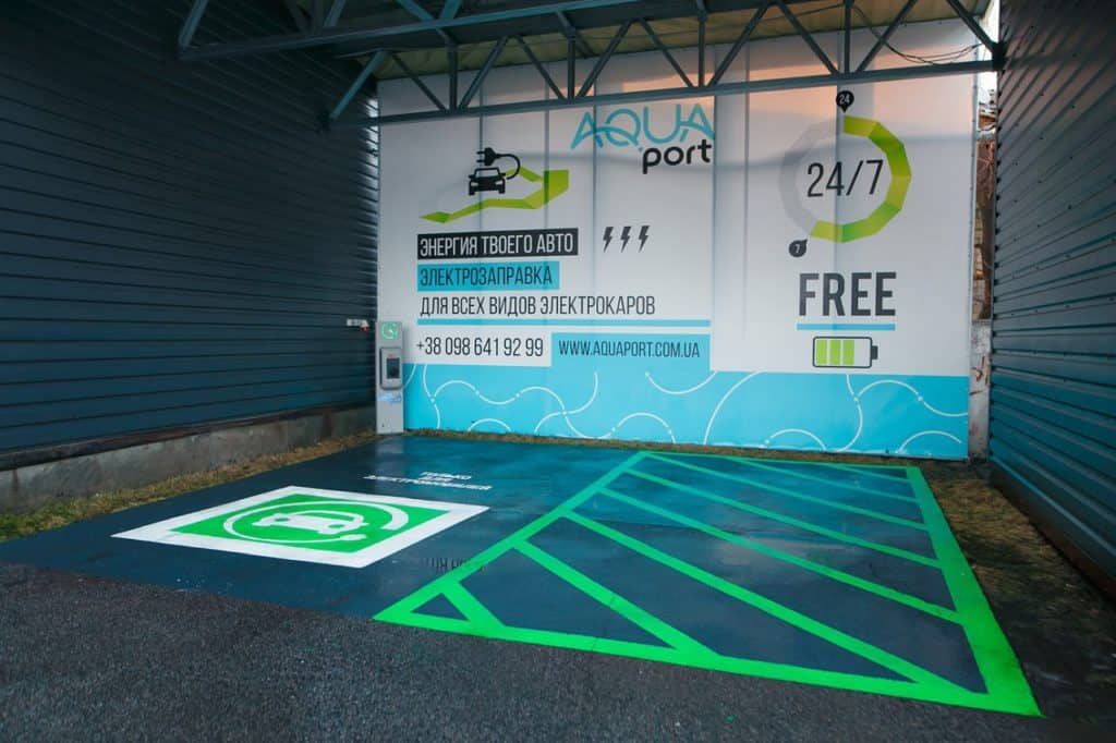 Сеть Aquaport обслуживает около 5000 машин в месяц. И поскольку в Днепре всё чаще встречаются электромобили, компания оборудовала паркинг для зарядки таких автомобилей.