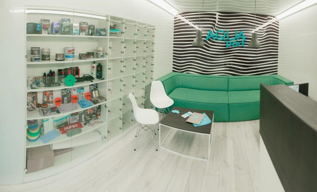 Автомойки оборудованы комфортабельными зонами ожидания и мини-шоурумами с продукцией SOFT99 и RUPES. Для VIP-клиентов подготовлены индивидуальные шкафчики с личными микрофибровыми полотенцами, мочалками, шампунями и другими средствами очистки и защиты.