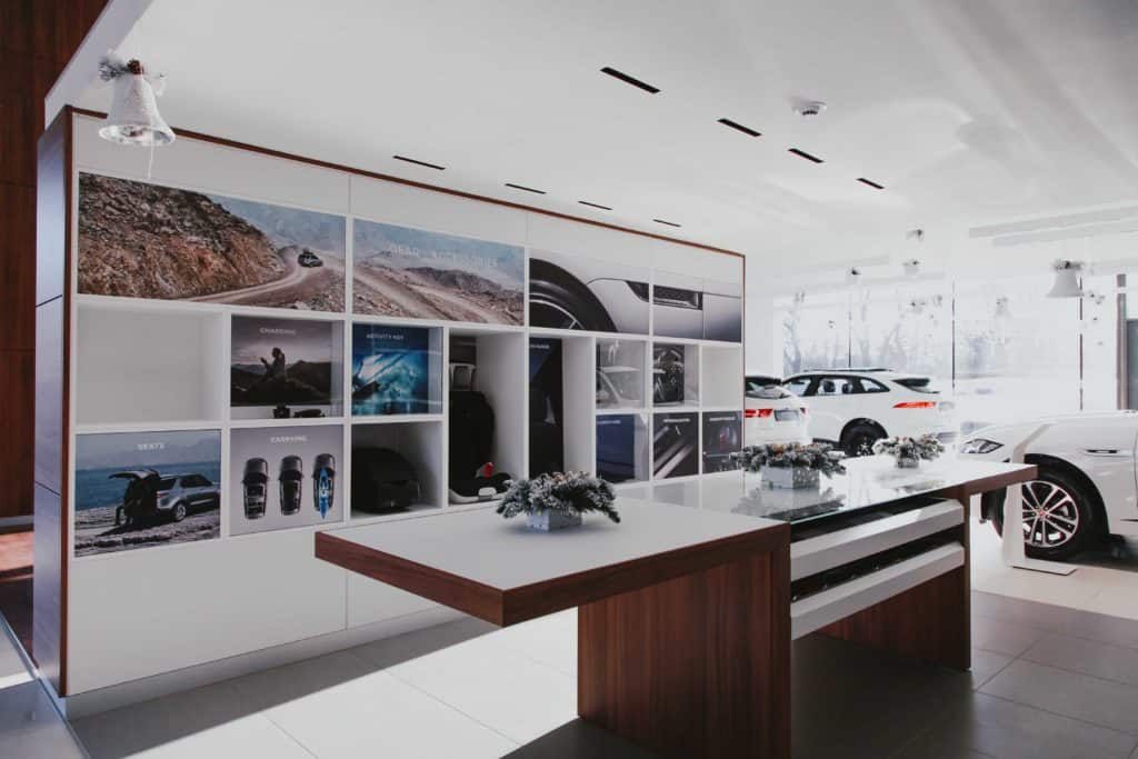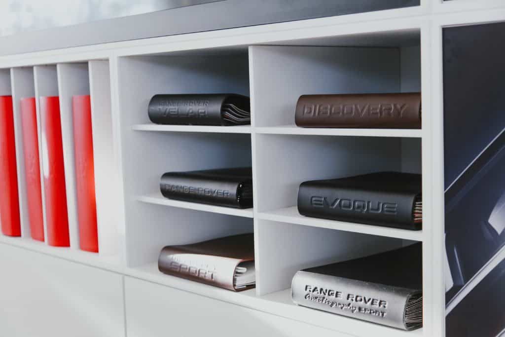 В просторной клиентской зоне расположен шоу-рум с полным модельным рядом Jaguar и Land Rover, а также студия персонализации с образцами отделки салона и палитрами кузовной окраски.