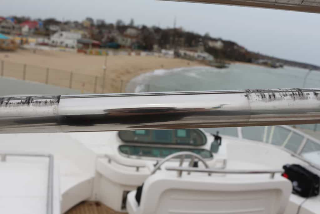 Полировка. Помогает убрать все виды потертостей, а также последствия солевых разводов и ожогов от яркого солнца, которые остаются на гелькоуте и других поверхностях судна после сезона активного судоходства. Все проблемные зоны станут хорошо заметны, когда вы тщательно помоете судно. Если оставить их без внимания, после зимы вас может ждать сюрприз: вздувшийся гелькоут или проеденные коррозией хромированные детали.