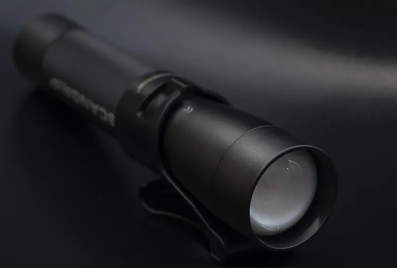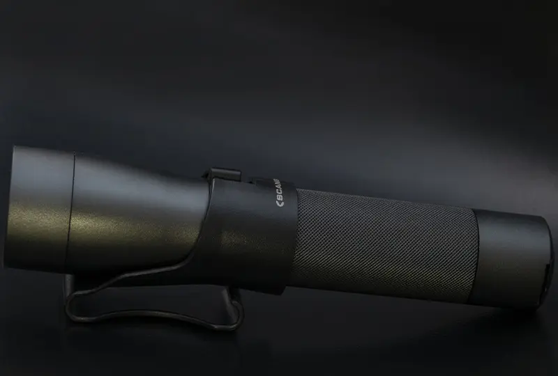 - Знімний затискач дає змогу фіксувати ліхтар на поясі
