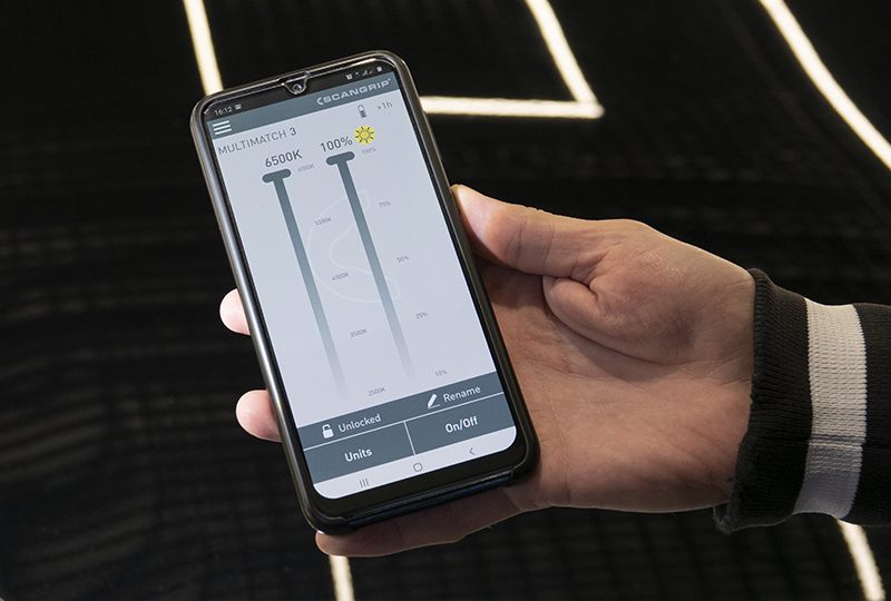 Осветителями Scangrip можно управлять удаленно. Через приложение, доступное на App Store или Play Market удобно синхронизировать приборы между собой и полностью регулировать функционал — мощность, температуру света и т.д.