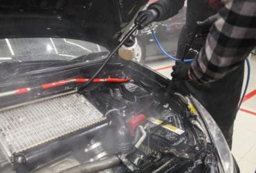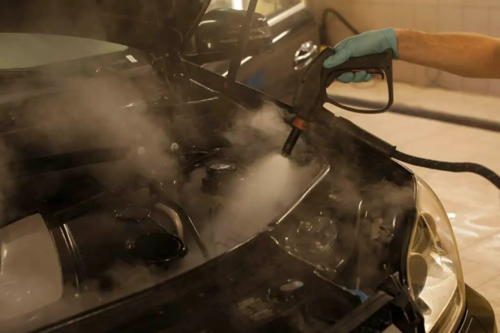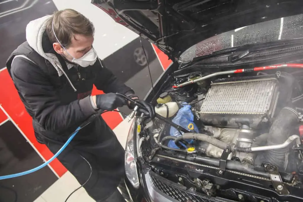 Мыть с помощью АВД нужно очень аккуратно. Легко залить свечи, катушки, воздуховоды, контакты и другие чувствительные части подкапотного пространства. Чтобы этого избежать, необходимо изолировать все чувствительные к влаге места и использовать диэлектрическую химию. Также мощная струя может испортить уплотнительные резинки и даже погнуть радиатор.