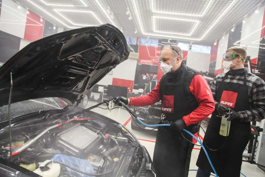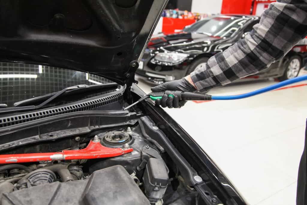 После мойки с помощью АВД необходимо тщательно просушить подкапотное пространство продувочным пистолетом. Вода может остаться в труднодоступных местах, отчего появится ржавчина.