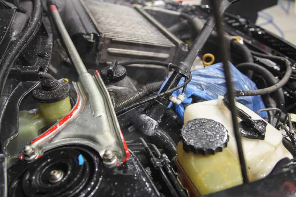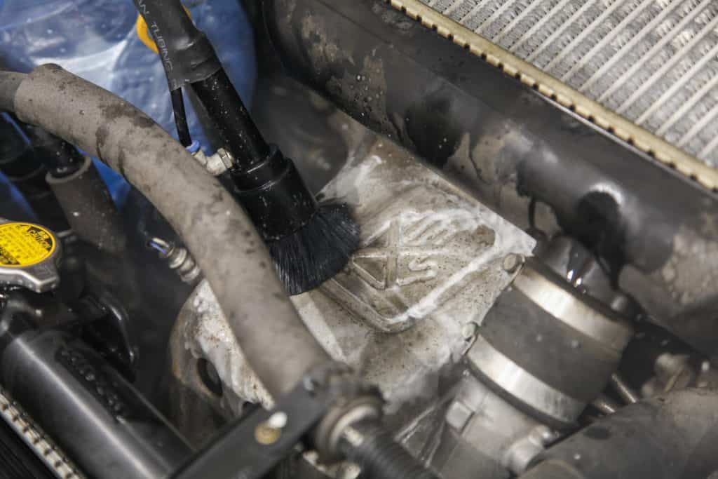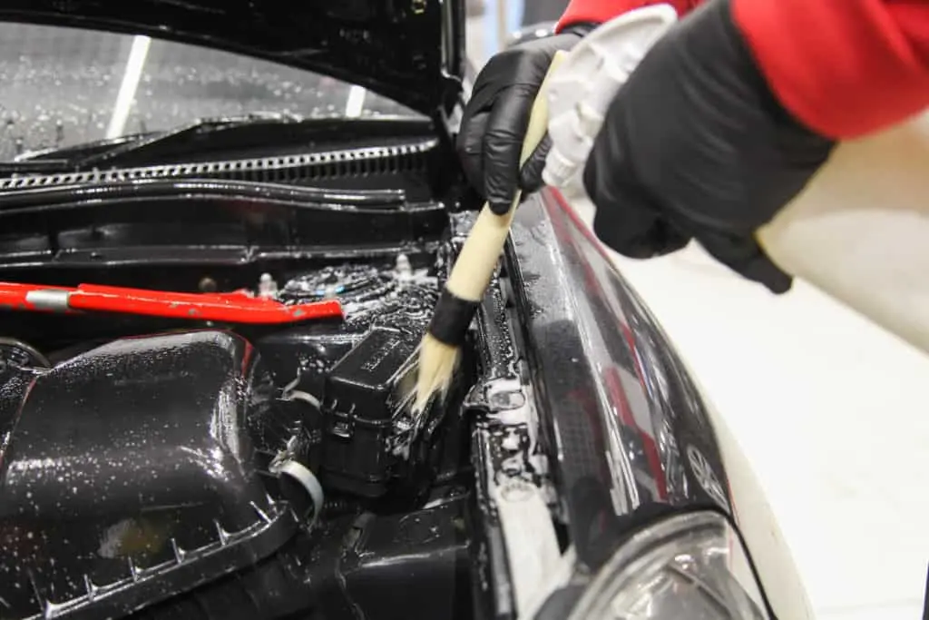 Помыть подкапотное пространство без инструментов можно, но только сверху. Для этого вам понадобится пенный очиститель в баллоне, кисточка и микрофибровое полотенце. Это самый простой и безопасный способ мойки, который подходит для регулярного ухода за подкапотным пространством.
