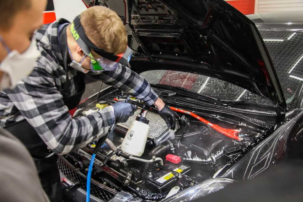 Мойка подкапотного пространства безопасна при условии наличия навыков и специального инструмента. Мы рекомендуем мыть подкапотное пространство в студии детейлинга или на хорошей автомойке хотя бы раз год.