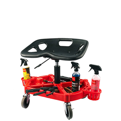 Модульный табурет на колёсах удобно использовать для оклейки PPF порогов и бамперов. Есть модели, оснащённые органайзером и боковыми корзинами для хранения автохимии и инструментов. Усиленные прорезиненные колёса вращаются на 360° и фиксируются тормозами.
